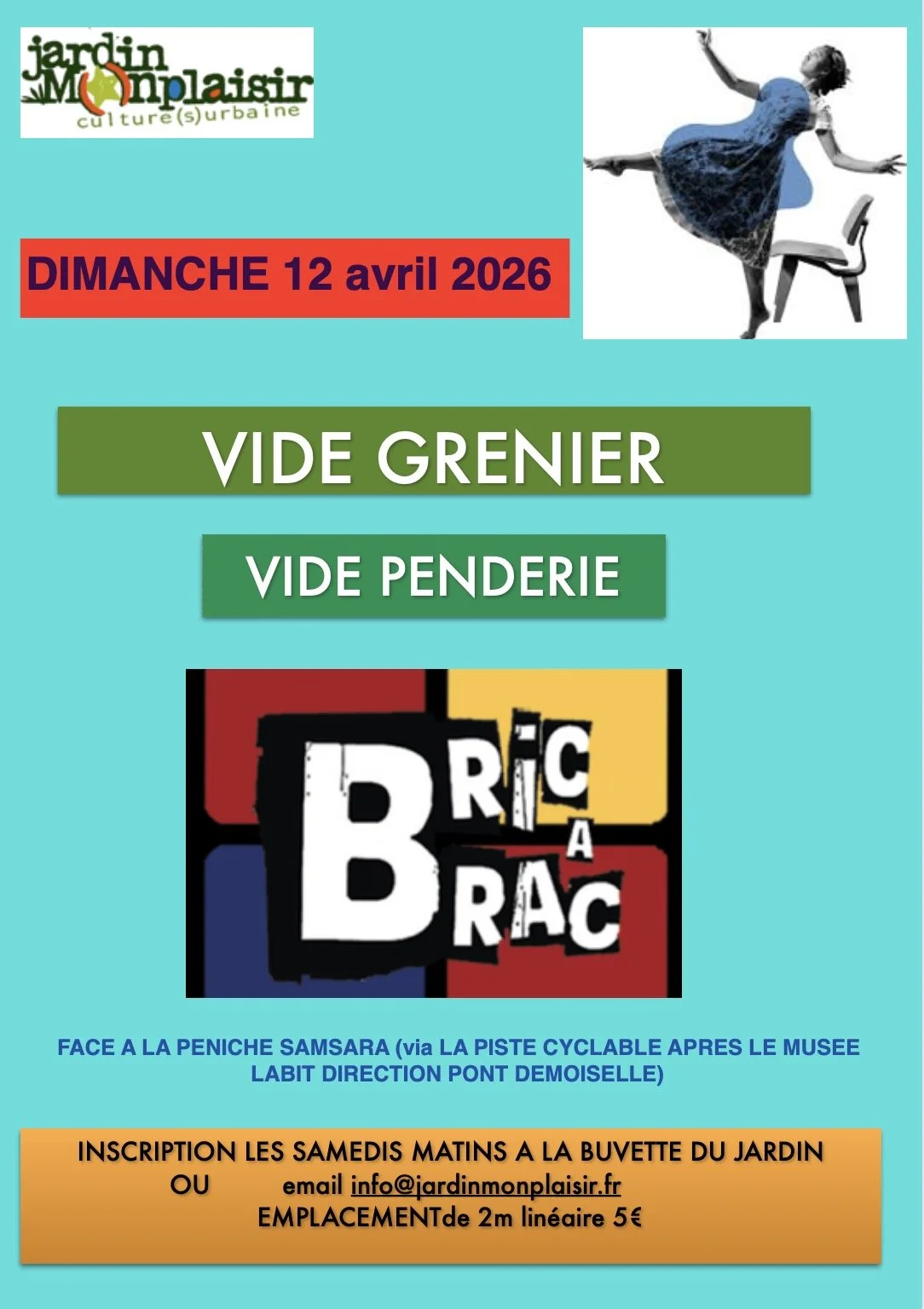 DIMANCHE 5 MAI 2024 - Comme chaque année vide grenier au Jardin Monplaisir. VIDE GRENIER. VIDE PENDERIE.